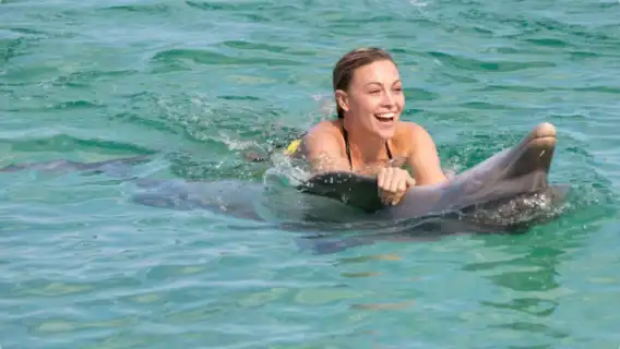 Experience a dorsal fin tow guided by dolphins