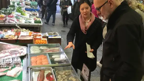 Cook of donburi (bowl) meal with fresh ingredients from the market