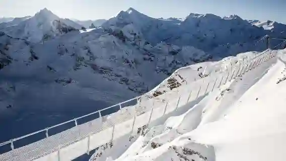 Cross a narrow suspended bridge on the Titlis Cliff Walk for an adrenaline rush
