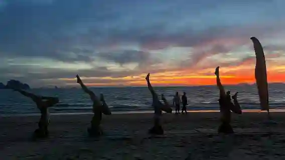 Practice yoga on the beach or in a picturesque outdoor location in Krabi