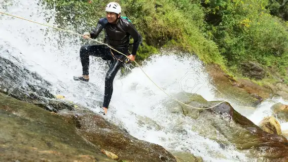 Experience the thrill of descending 4 waterfalls in the Sacred Valley