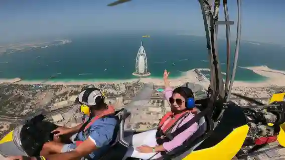 Experience Dubai's skyline from 1,500 ft on a two-seat open gyrocopter flown by professional pilots.