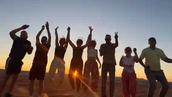 Cozy tents amidst dunes. Starlit campfire stories.