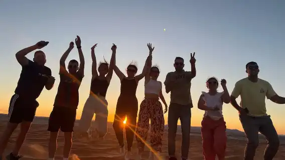 Bonfire stories in golden sands. Camel ride at sunset.