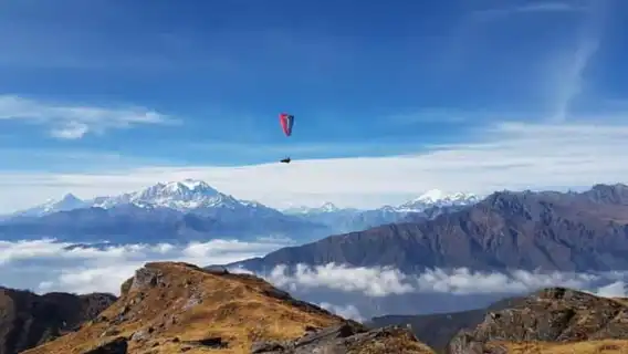 Takeoff location at Sarangkot, a popular hill station in Pokhara.