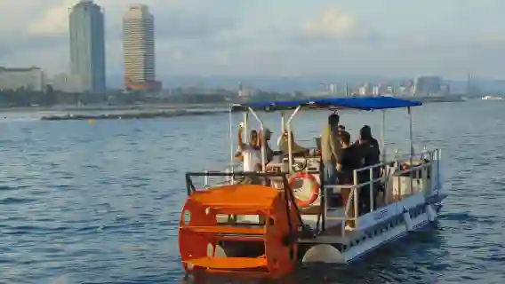 Enjoy a wide deck, sofas to rest on, and 12 separate pedal seats on the boat