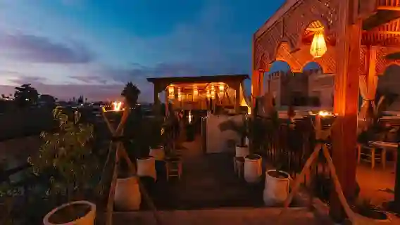 Admire the city's skyline from a rooftop with a view of the Koutoubia Mosque