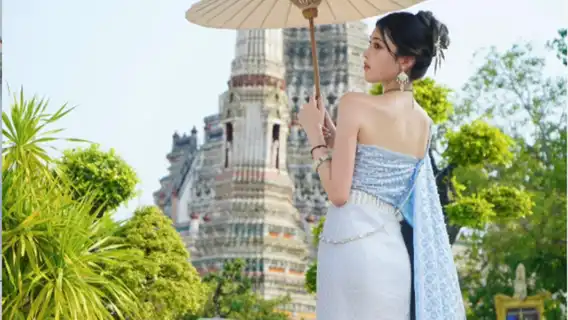 Bangkok Wat Arun Thai traditional costume rental with makeup, hairstyling, and photography